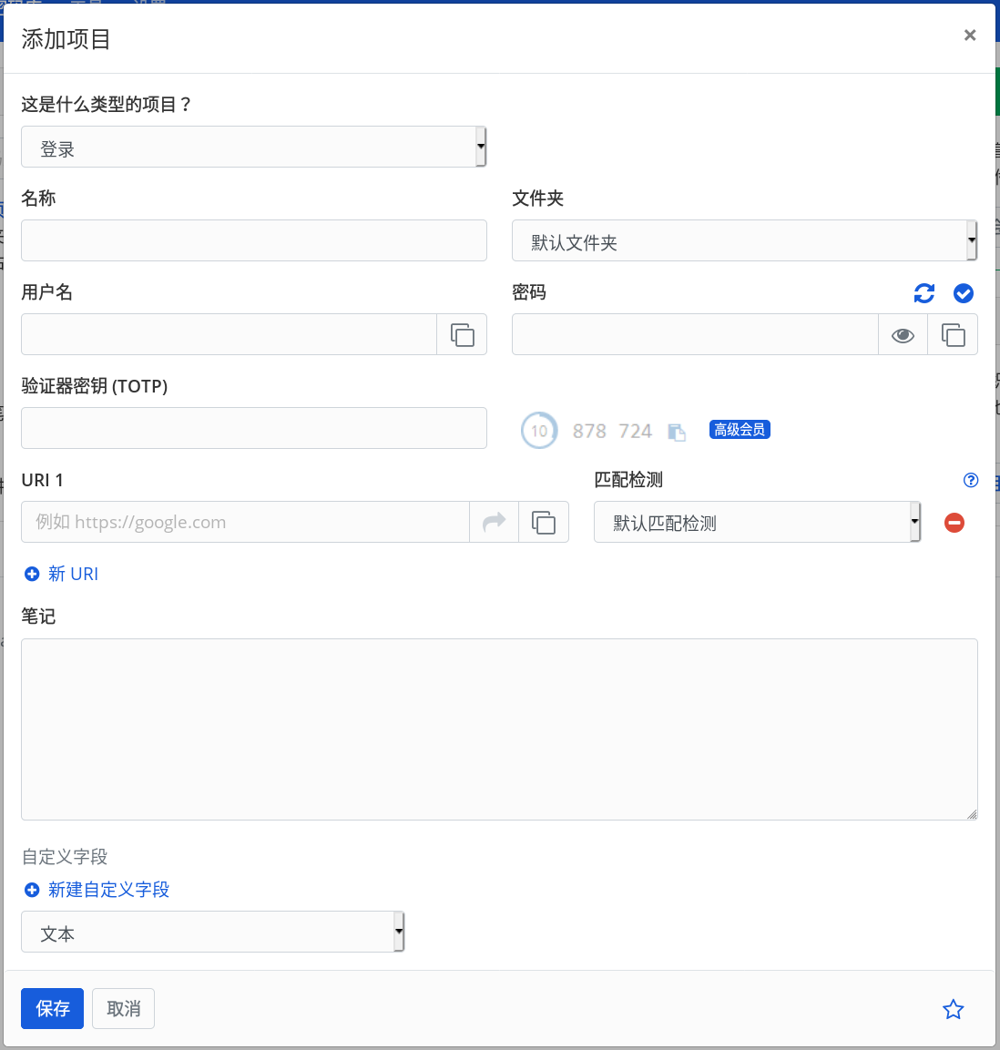 - 用于自动填写。这个会在你使用 Bitwarden 浏览器插件或手机应用时有用。