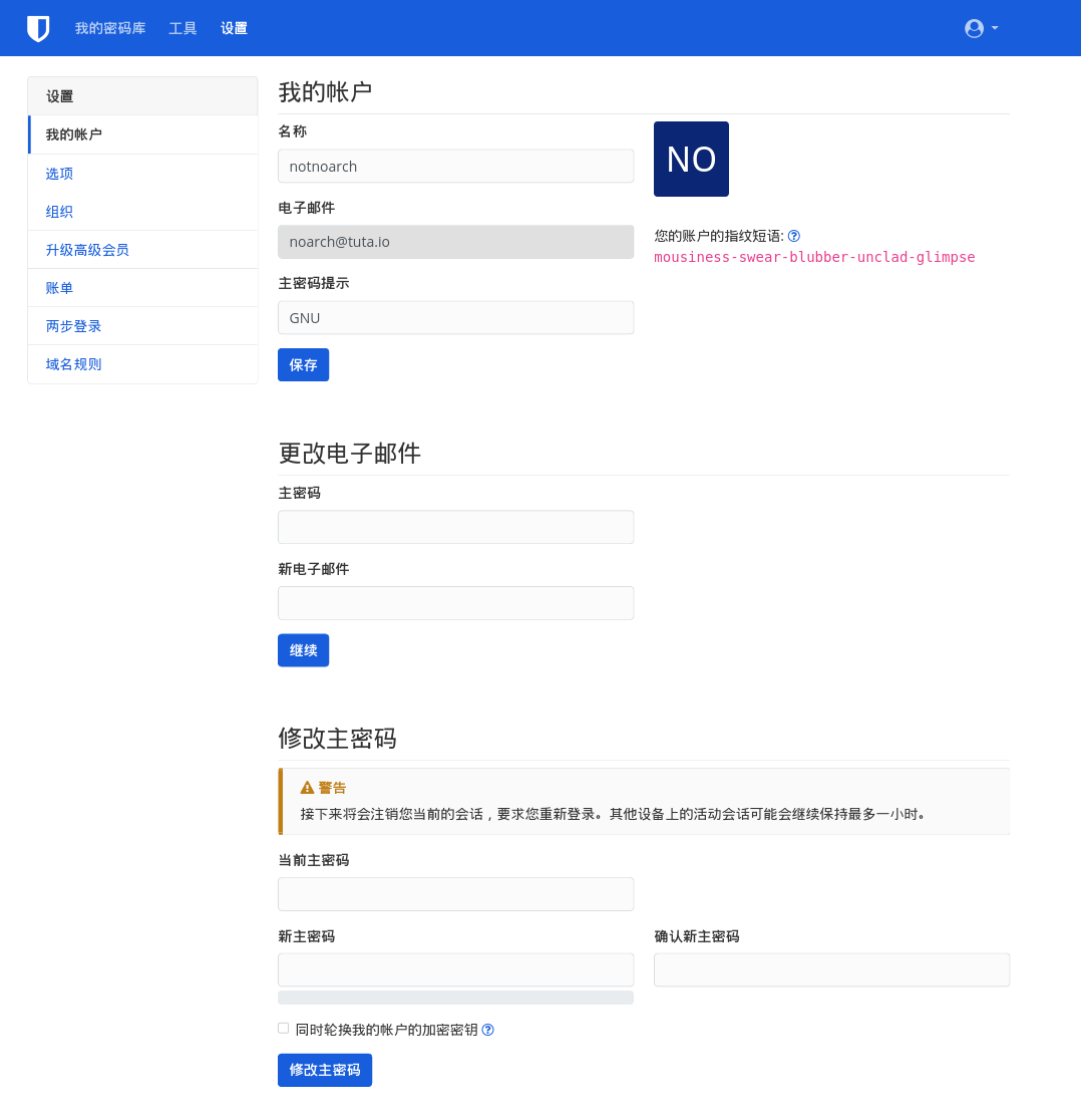 如果你不慎泄露了主密码 (noarch 希望你绝对不要),或你的邮箱被盗,在伤害发生前请立刻在 Bitwarden 内修改对应的设置。