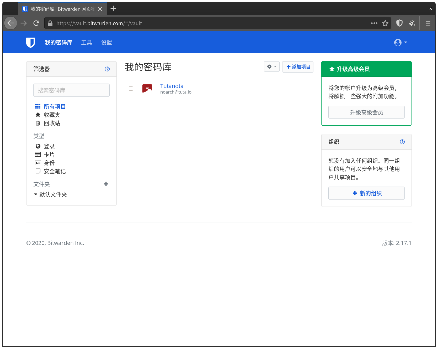 本章要讲述的是 Bitwarden 的网页版密码库。