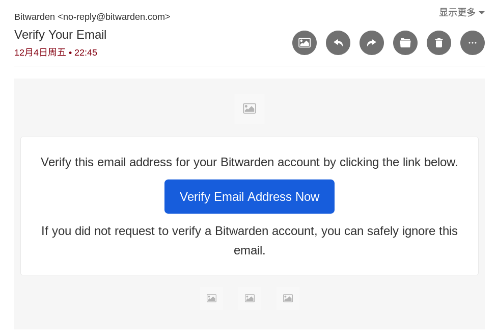打开你用来注册 Bitwarden 的电子邮件账户;你应该会看到一个“欢迎”邮件。